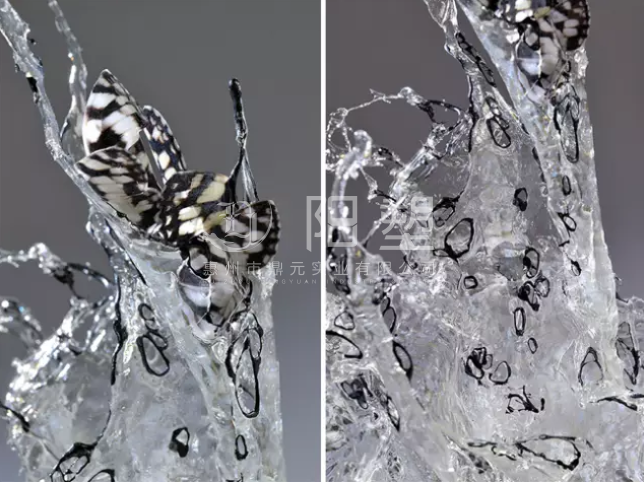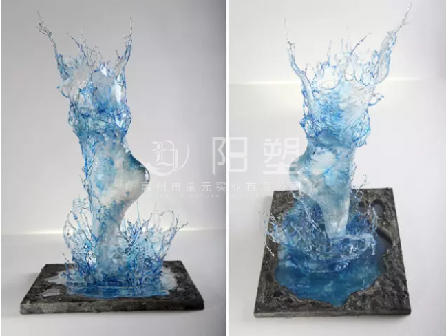 意大利是藝術生產靈感的天堂級別的國際,其中一名名為Annaluigia Boeretto的藝術家利用不飽和聚酯樹脂勾劃出了時光暫停般的魔法,整個成品出來充滿了對液體時間那一瞬間的美感想象并賦予了生命力,多很多靈動、激情、瞬間動人。她運用不飽和聚酯樹脂去制造每一水和玻璃元素的結合使自己的作品有著各種各樣很有個性的形態,濺起的瞬間停格在了永恒里。